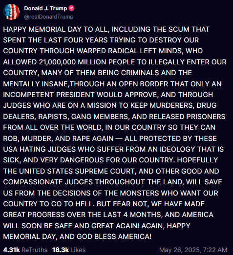 < בתמונה, דוגמה לפוסט שמתחיל כברכה, אך לאחר חמש מילים בלבד מתהפך לטרולינג פוליטי